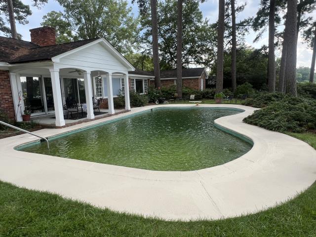 Columbia, SC - Transformed a faded, weathered pool deck in the Forest Acres area, by power washing before applying a smooth, resilient new coat of paint.