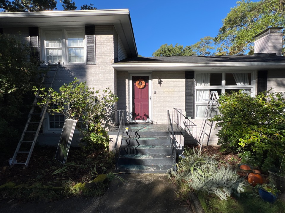 Columbia, SC - Full exterior repaint is officially ready to go. The home is completely prepped, covering key areas like overhead trim (fascia/soffit), all exterior accents (window trim, doors, shutters), and the entire outdoor living space (porch, railings, fence).