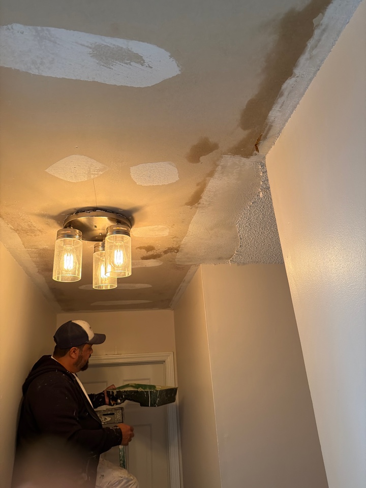 Made repairs to ceiling and walls in 1,700 square foot home. Repainted ceilings, walls, trim, doors and kitchen cabinets in home.
